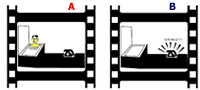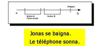 Lorsque l'on a deux actions, on appellera action A celle qui commence la première, et action B celle qui commence la deuxième. Par exemple, dans l'histoire de Jonas et du téléphone: Jonas commence à se baigner. se baigner est donc l'action A. Le téléphone commence plus tard à sonner : sonner est donc l'action B.