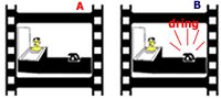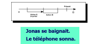 Dans le cas n° 2, quand le téléphone commence a sonner, Jonas est encore en train de se baigner. L'action A n'est donc pas finie.