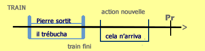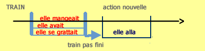 Règle : Lorsqu'un train d'action est encore en train lorsqu'une nouvelle action, qui n'appartient pas au train, commence, tout le train se met à l'imparfait.