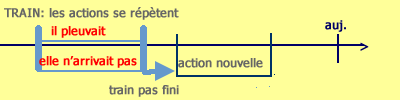 Règle : Lorsqu'un train d'actions passées est encore en route lorsqu'une nouvelle action commence, toutes les actions du train se mettent à l'imparfait.