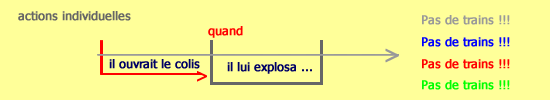 Règle : Lorsque la conjonction quand introduit l'action B, l'action qui commence la deuxième, on met l'accent sur l'effet de surprise. On fait commencer l'action A, et l'action B vient surprendre l'action A en plein essor.