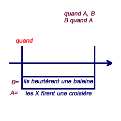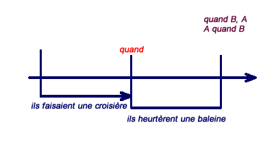 - Ils sont en train de faire cette croisière lorsqu'ils heurtent la baleine (action B introduite par quand).