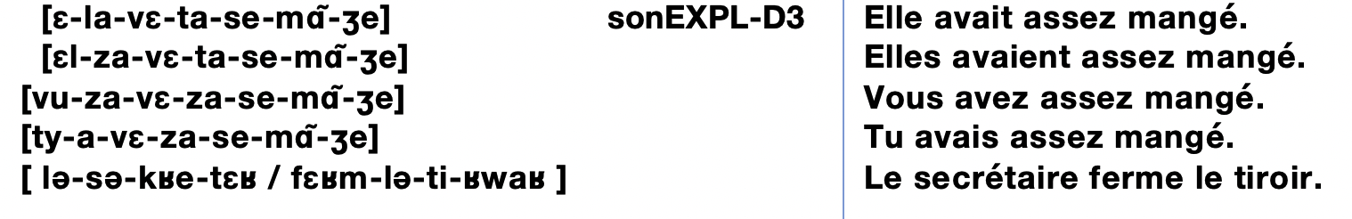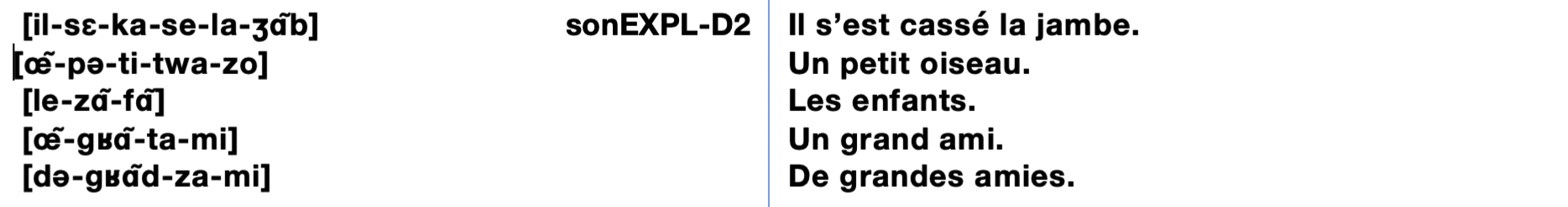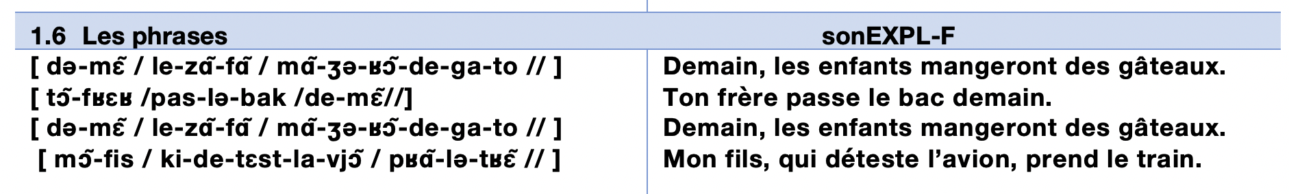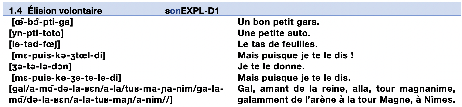 Voici les exemples utilisés dans le livre. Vous pouvez ici les lire, les écouter et lire la transcription phonétique en API.
